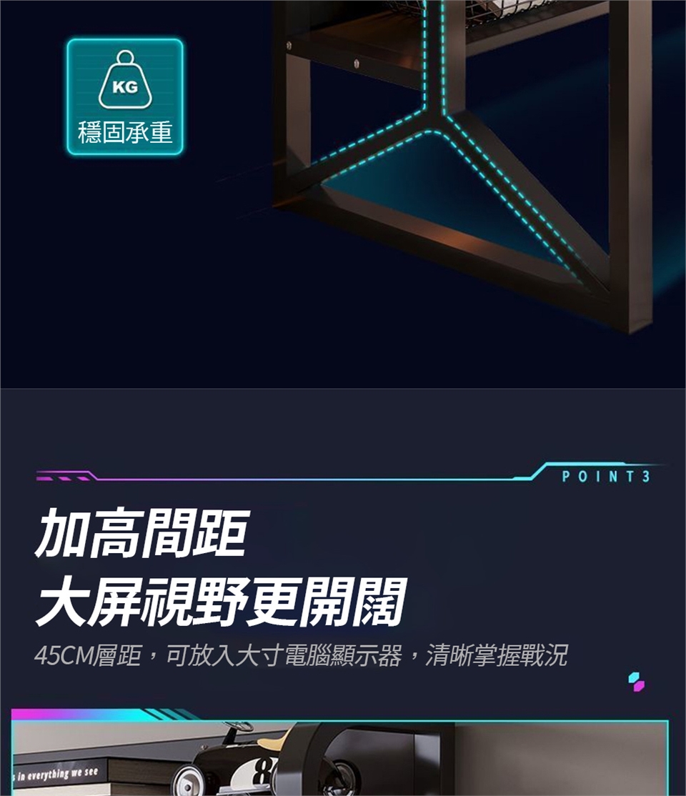 【商品名稱】電腦桌附桌面置物架 電競桌120CM