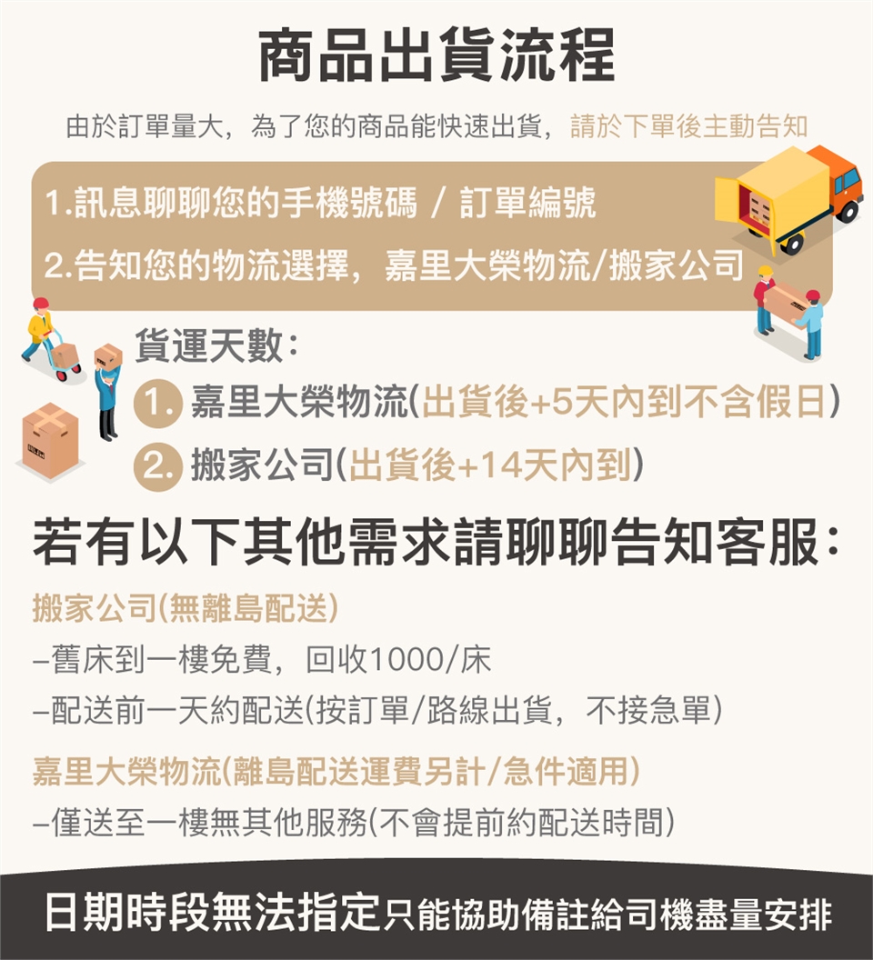 - 約3天內收到(只送到一樓無專人約配)|舊床也無免費搬至1樓等服務