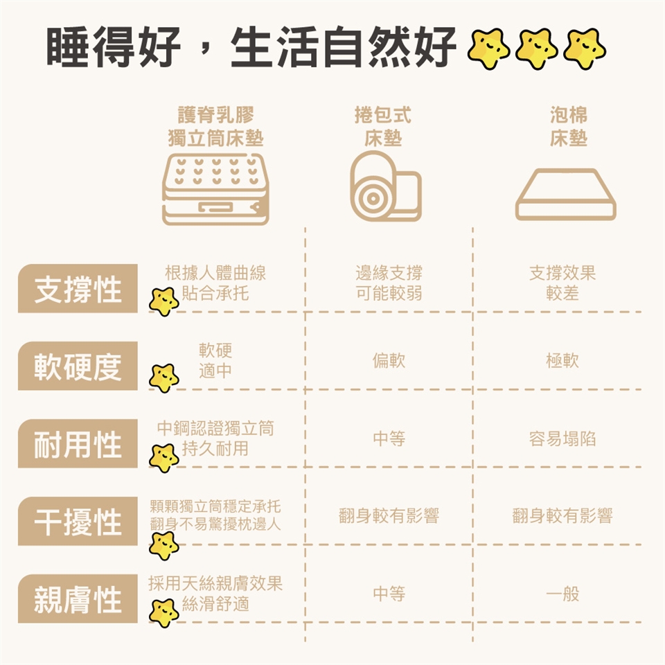 12.由於每張床墊皆由手工製造會有正負5cm差異,實屬正常,這是因為床墊的製造過程是手工完成的,其材料層具有一定的自然彈性拉伸跟收縮。