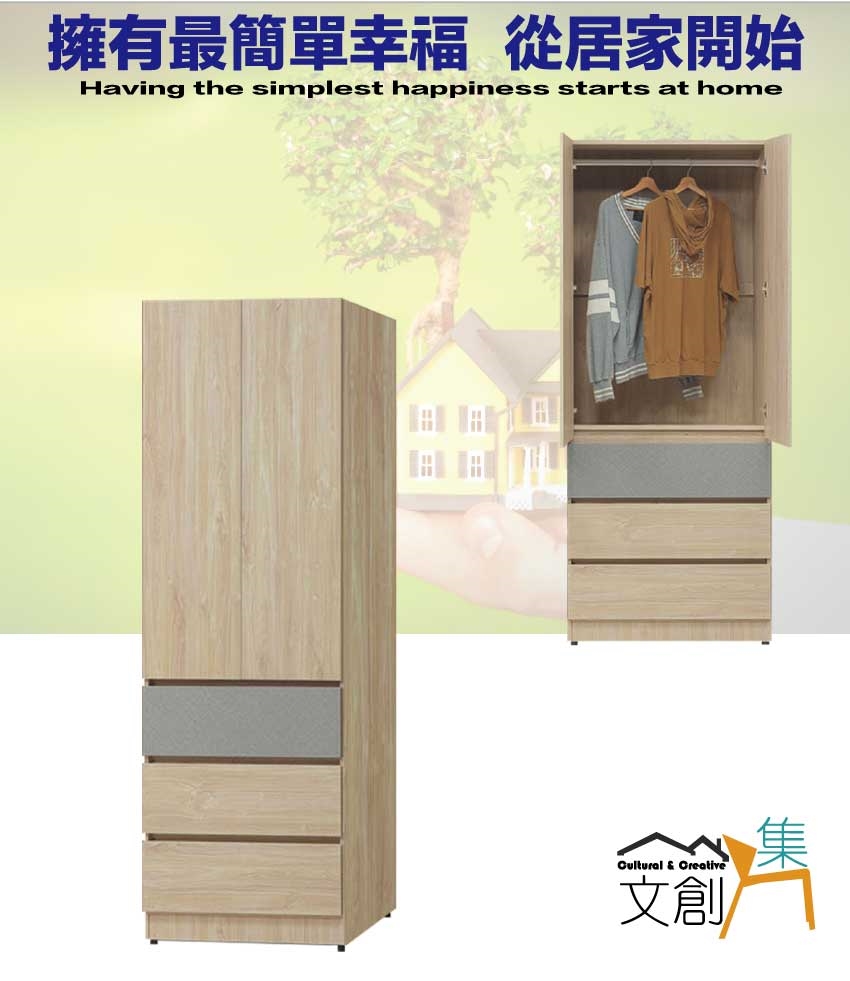 【文創集】唐斯2.7尺二門三抽衣櫃 橡木紋色系+安心材質製造,使用放心+搭配居家更便利,採用防蛀木心板+防潮耐磨底座+五金滑軌結構+防夾手緩衝門片五金等安心材質製造 ,外層採用防潮耐磨噴漆處理搭配採用開門櫃+吊衣桿+三抽屜+內開放層格等收納空間設計,全由專人配送到家,專業安心服務,替你省下更多時間!