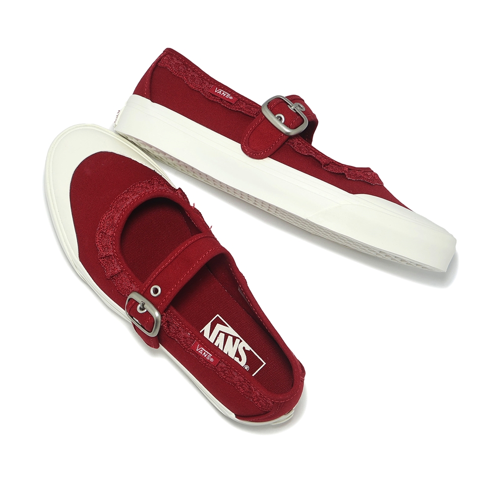 * 採用瑪莉珍風格鞋型設計,紅色帆布鞋身搭配鞋口蕾絲花邊設計,呈現獨特個性風格。