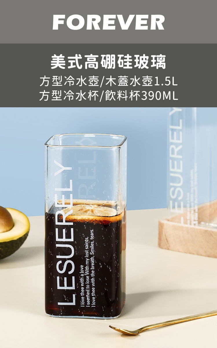 品名:【日本FOREVER】美式高硼硅玻璃杯/方型冷水杯/飲料杯390ML