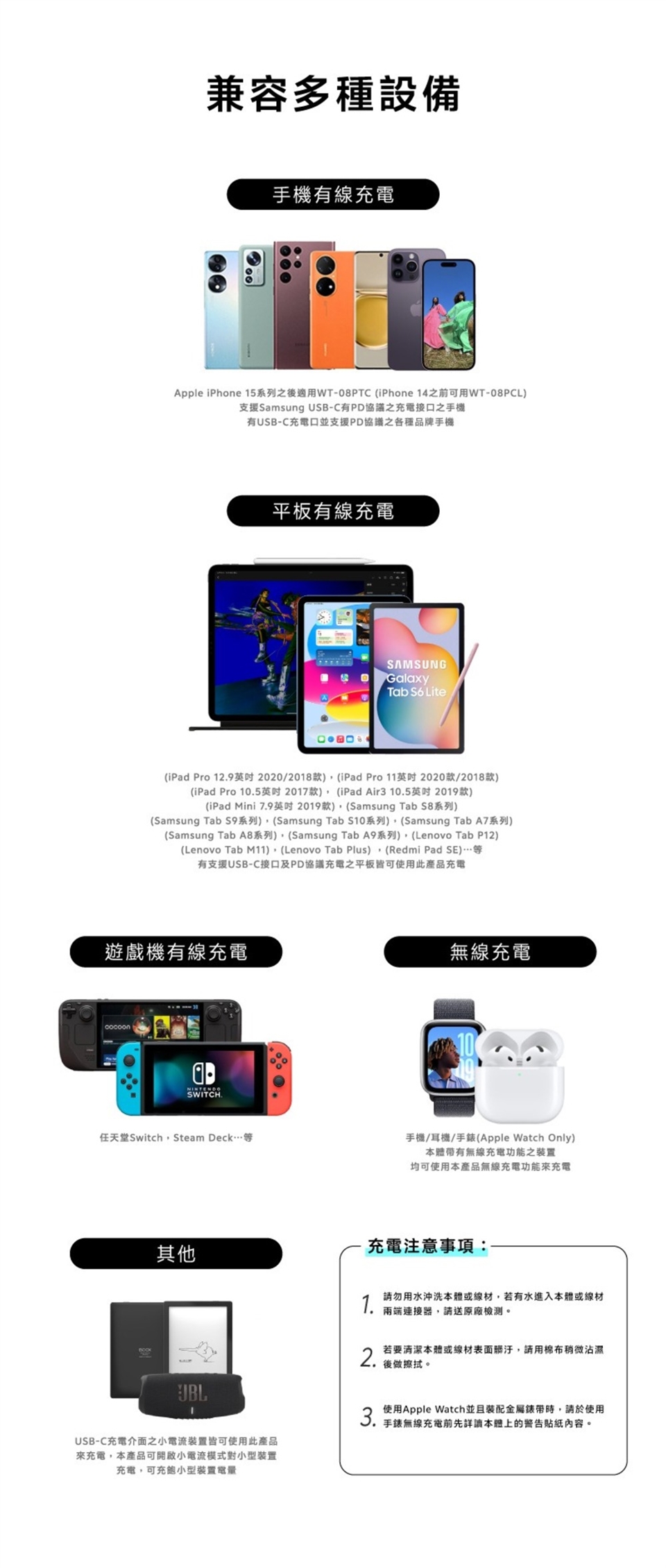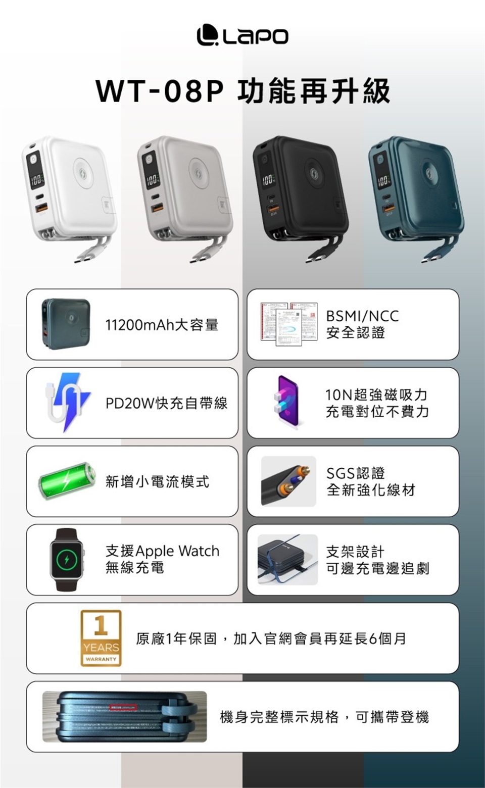 使用LaPO全功能無線充電行動電源(WT-08P) 時,請注意以下事項:避免使用含有金屬的手機殼或指環支架,因為它們可能導致無線充電異常或過熱;充電時避免邊用邊充,以免造成電池過度負載;若有問題,請先參考說明書或聯繫官方客服。