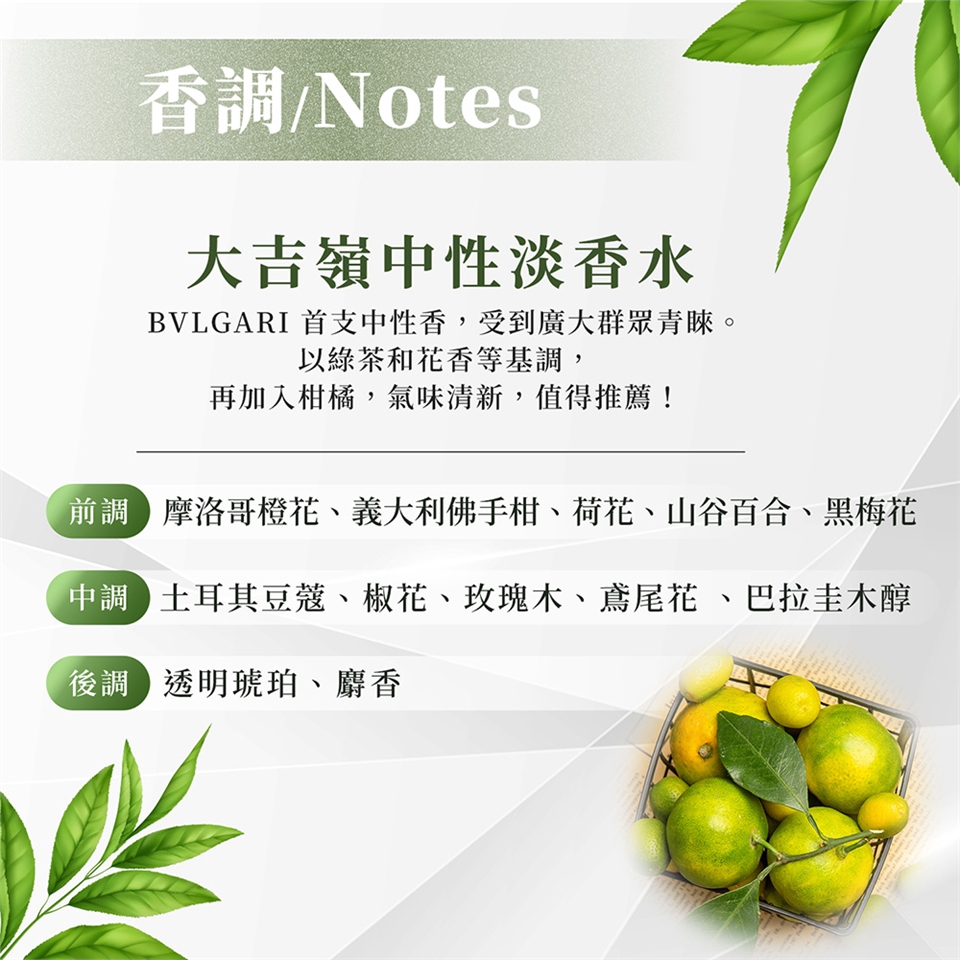 中文品名:BVLGARI 寶格麗 大吉嶺中性淡香水(100ml)-新版