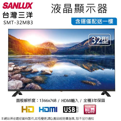 SANLUX台灣三洋32吋液晶顯示器/無視訊盒 SMT-32MB3~含運僅配送一樓