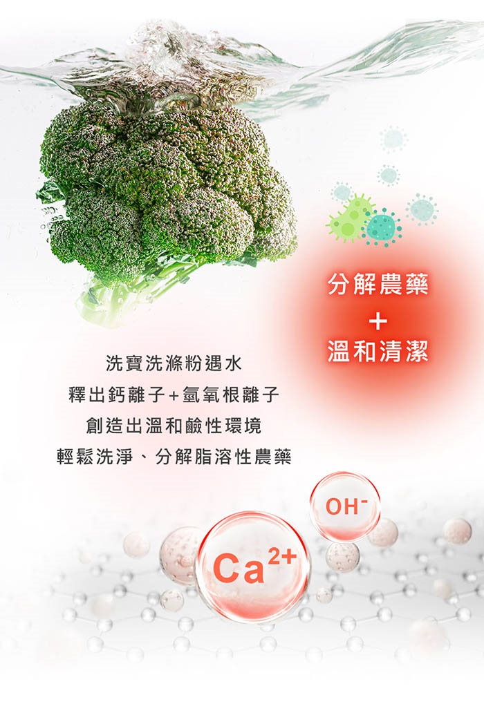 不含化學添加物,能有效分解農藥殘留、去除髒污,洗得安心!