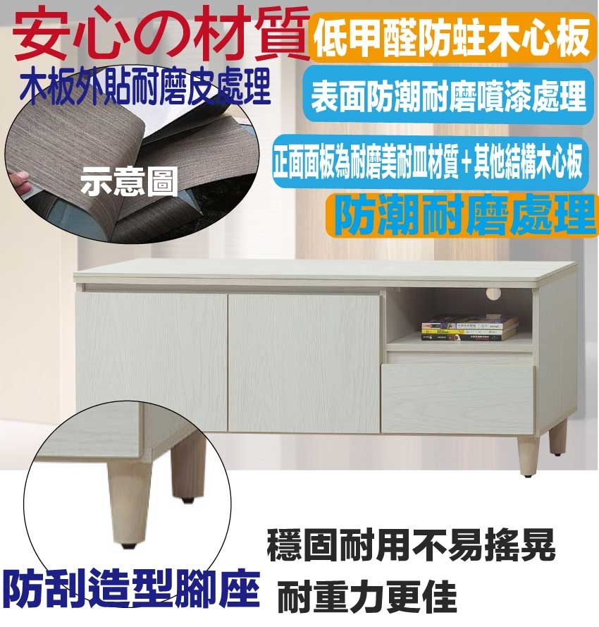 【文創集】盧班岩板4尺單抽二門電視櫃 淺橡木紋色系+安心材質製造,使用放心+搭配居家更便利,採用防蛀木心板+防刮造型腳座+12mm高硬度岩板桌面板+防夾手緩衝五金等安心材質製造 ,外層採用防潮耐磨噴漆處理搭配採用開門櫃+單抽屜+開放式層格等收納空間設計,全由專人配送到家,專業安心服務,替你省下更多時間!