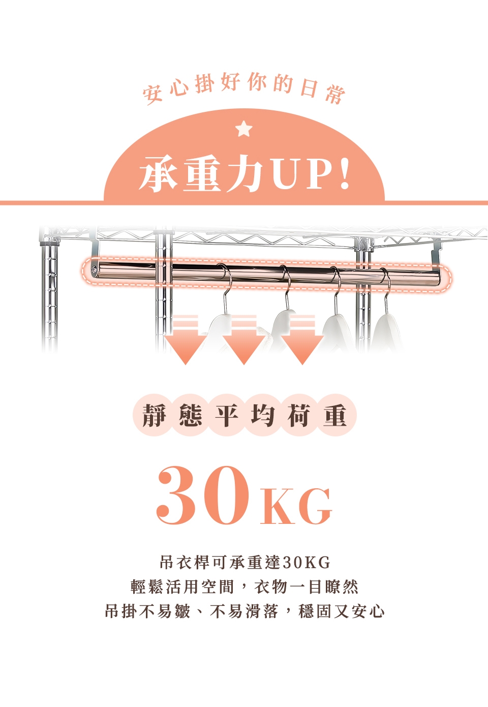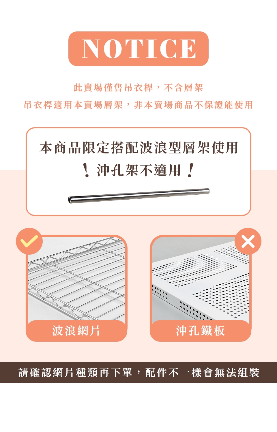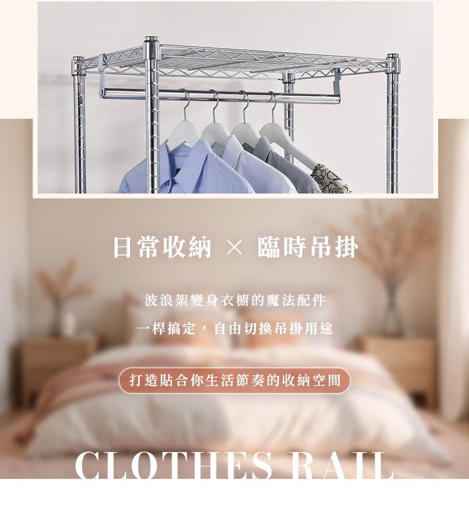 ⚠ 吊衣桿適用本賣場層架,非本賣場商品不保證能使用。