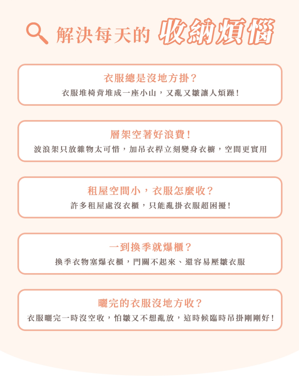 不論是日常收納或臨時吊掛,吊衣桿都是靈活運用空間的好幫手!