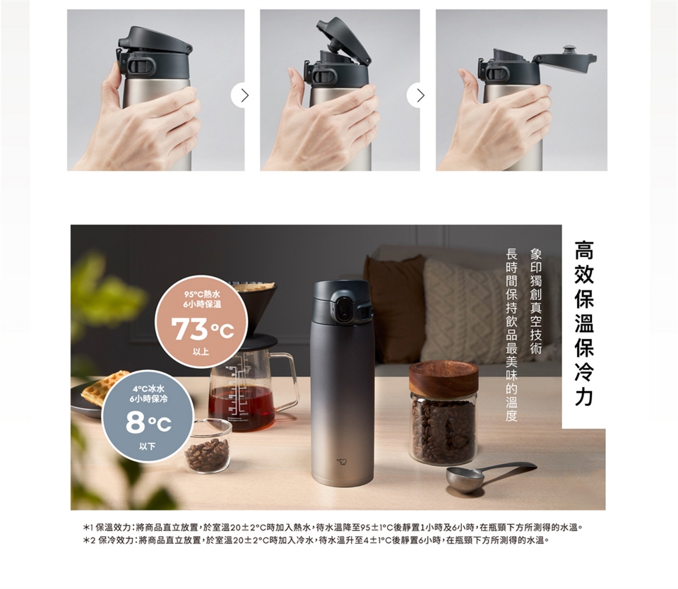 (9)保溫效果:1小時→88℃以上,6小時→73℃以上;保冷效果:6小時→8℃以下。