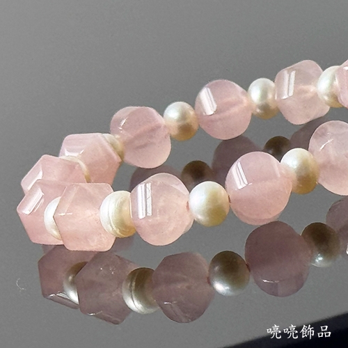 高貴典雅天然珍珠/粉晶六面鼓珠 精品手鍊