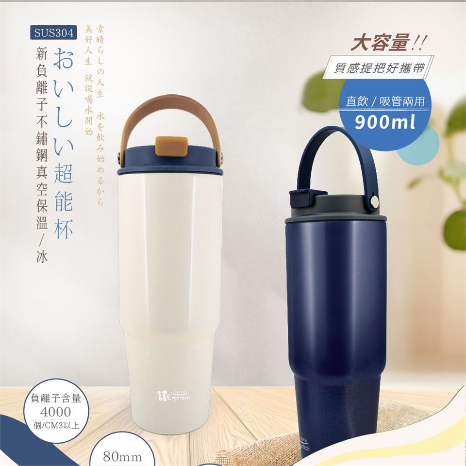 新負離子SUS304不鏽鋼真空保溫(冰)超能杯(900ml)*2 (開放體驗)