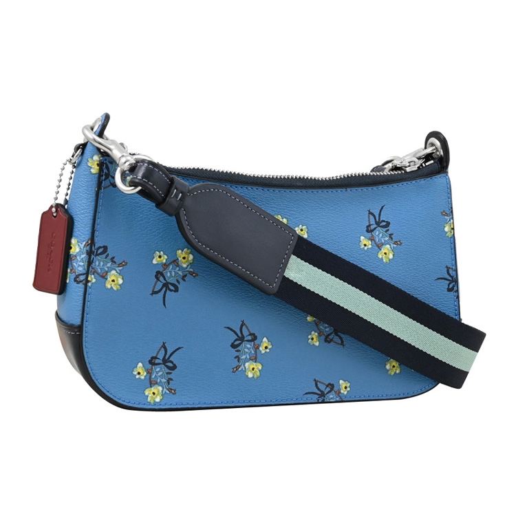 COACH 專櫃款,與專櫃同步,高人氣斜背麻將包款,採用防刮印花皮革與花朵圖案印花造型,拉鍊開口/內有1貼袋供收納,附1質感皮革LOGO吊飾,內可放長夾、手機、鑰匙等隨身小物,可斜側背或肩背,甜美高雅且精緻,官網熱銷款,搶眼又好搭的設計,若偏好斜背包款的你,不能錯過這款。