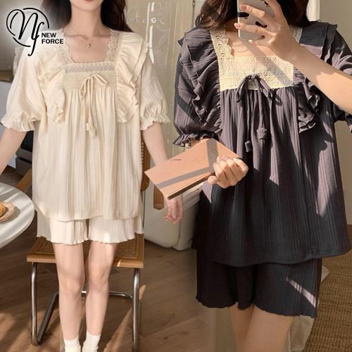 NEW FORCE 氣質微光短袖附胸墊居家套裝-多色可選