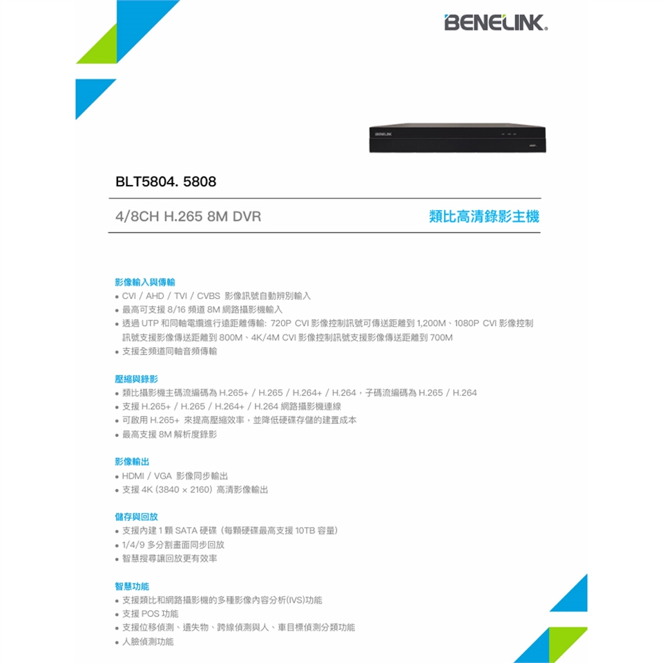 - 支援8M高清錄影與回放