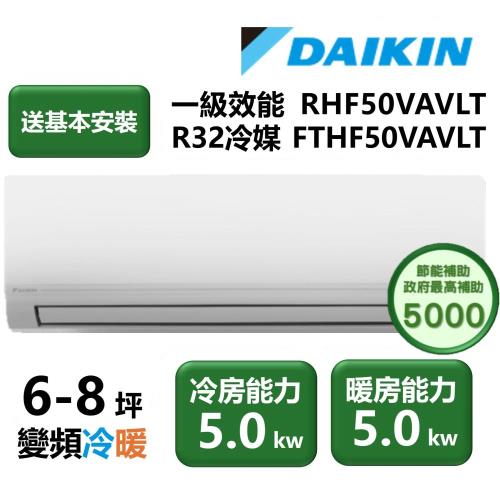 【家電速配 大金DAIKIN 】區域限定V系列(6-8坪)一級效能節能減碳變頻冷暖分離式冷氣RHF50VAVLT/FTHF50VAVLT