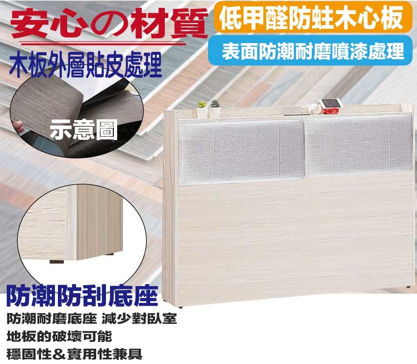 【文創集】得卡利6尺雙人加大耐刮皮革插座床頭片不含床底+不含床墊)      橡木紋色系+安心材質製造,使用放心+搭配居家更便利,採用防蛀木心板+防潮耐磨底座+耐磨耐刮皮革+高彈力泡棉等安心材質製造 ,外層採用防潮耐磨噴漆處理搭配開放層格+便利插座設置等收納空間設計,全由專人配送到家,專業安心服務,替你省下更多時間!