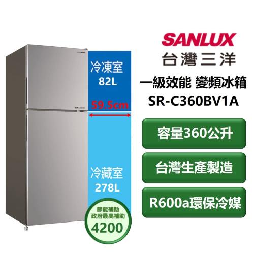 【家電速配 SANLUX三洋】直流變頻系列360公升 一級效能高效省電效率冷藏LED燈雙門變頻冰箱(SR-C360BV1A)