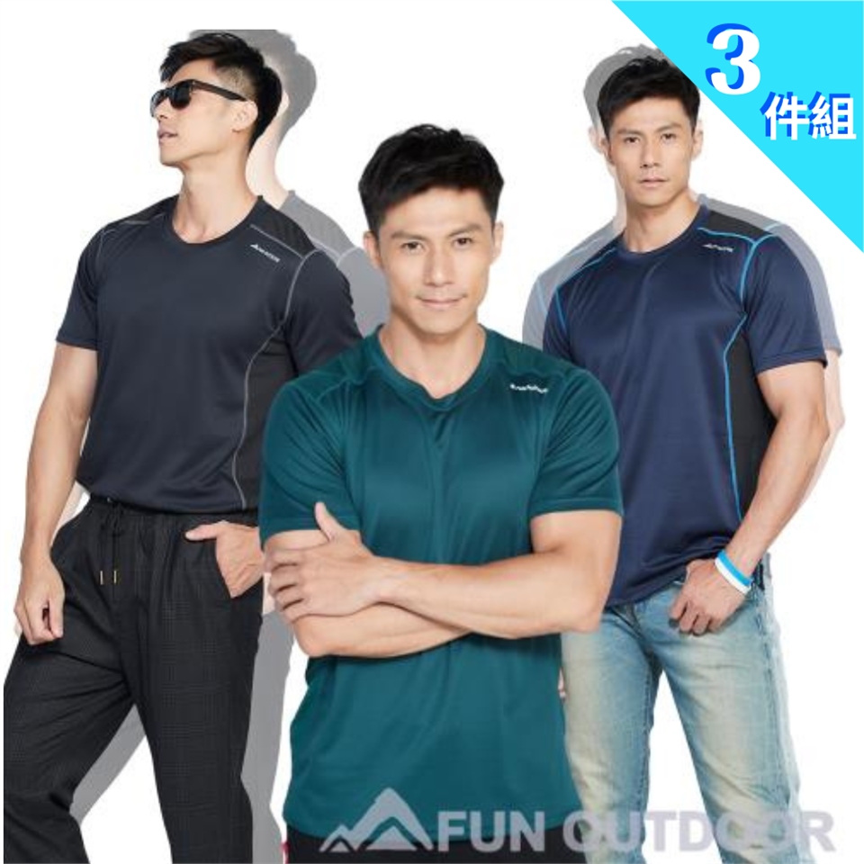 超輕彈涼感透心多樣拼接圓領短袖上衣 男款為 黑灰/丈青/墨綠 色