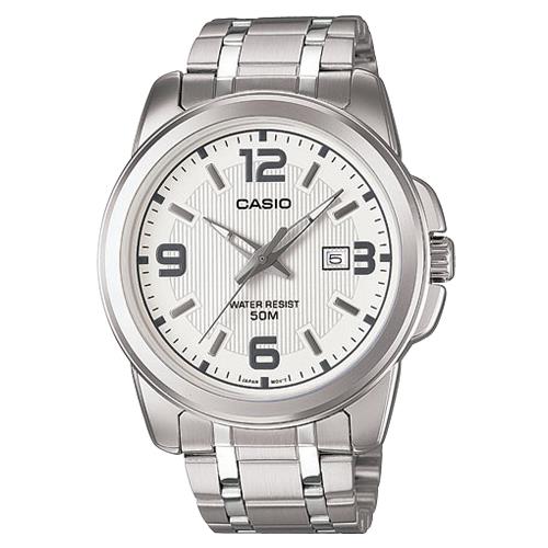 【CASIO 卡西歐】指針男錶 大錶徑 白 不鏽鋼錶帶 50米防水 礦物玻璃 (MTP-1314D-7A)
