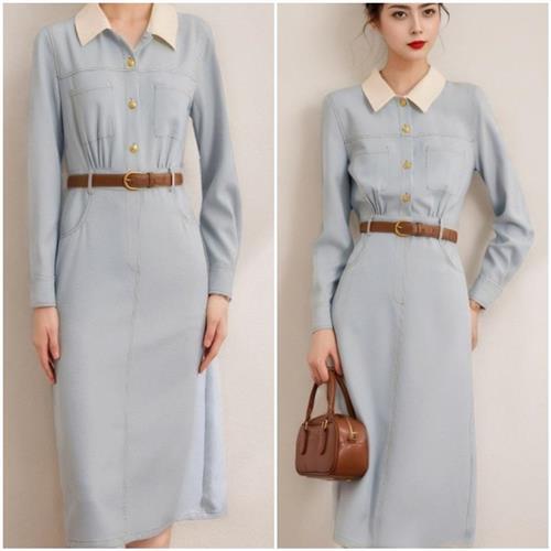 【巴黎精品】現貨+預購 女長洋裝長裙高級短洋裝法式連身裙子蕾絲洋裝A字裙-長袖拼接翻領修身a1kc16