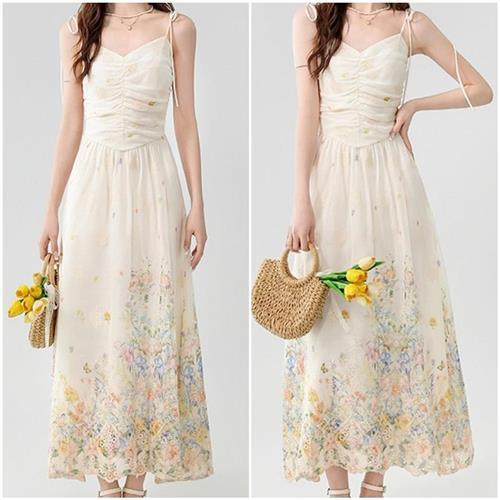 【巴黎精品】現貨+預購 女長洋裝長裙高級短洋裝法式連身裙子蕾絲連衣裙洋裝A字裙-無袖復古碎花收腰a1kc9