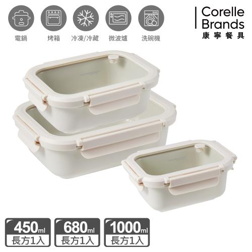 【美國康寧】SNAPWARE Eco Ren陶瓷保鮮盒三件組(450x1+680x1+1000x1)-C01