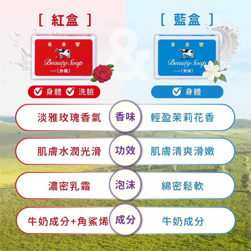 【成分】皂基、香料、乳脂(牛奶)、角鯊烷(紅盒)、水、硬脂酸、二氧化鈦、EDTA-4Na。