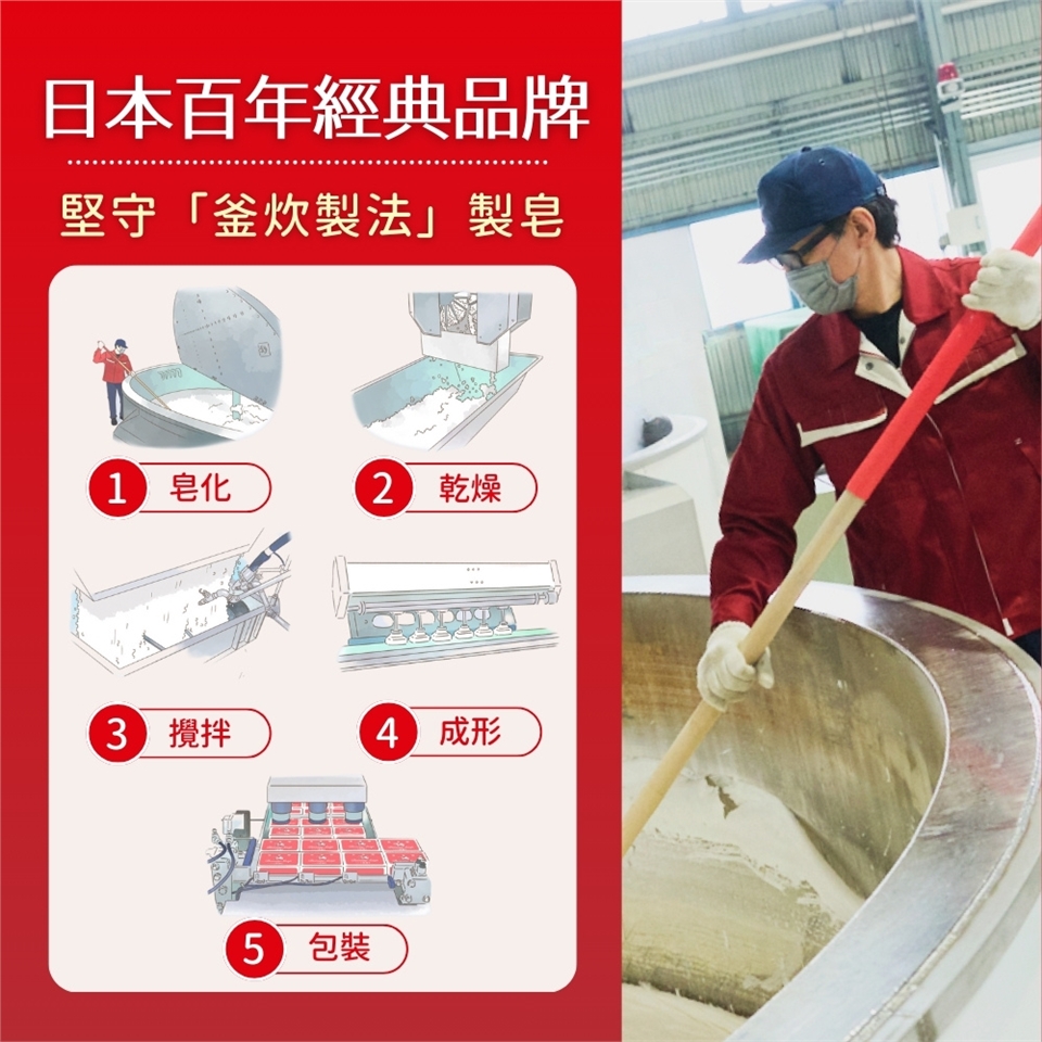 ●日本百年經典品牌,堅守「釜炊製法」製皂,品質卓越,歷久彌新。
