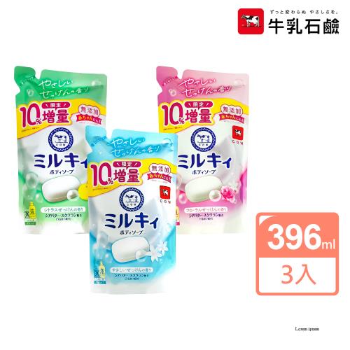 【日本牛乳石鹼】牛乳精華沐浴乳補充包396ml(3包組)
