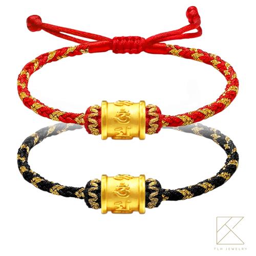 【TLH】黃金墜編織手繩 純金999兩色可選 六字真言 約重0.03錢±0.01 (生日 情人節 送禮)