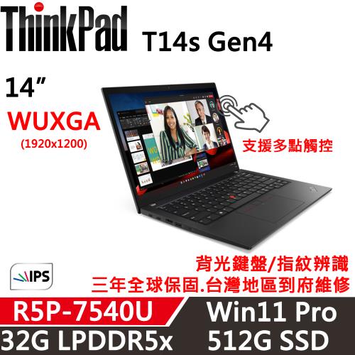 Lenovo聯想 ThinkPad T14s Gen4 14吋 觸控螢幕 R5P 7540U/32G D5/512G SSD/W11P/三年保