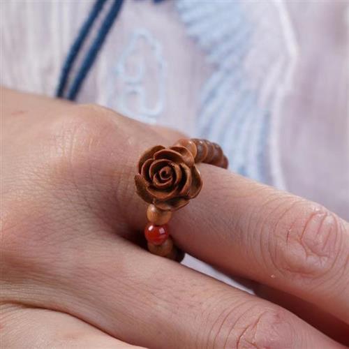 【巴黎精品】現貨+預購 天然檀木戒指紫檀戒指沉香木雕刻息災防小人轉運除穢淨化開運-玫瑰男女飾品a1ki27