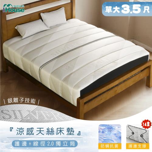 【IHouse】護邊M型支撐 單大3.5尺中鋼2.0獨立筒床墊 銀離子涼感包床