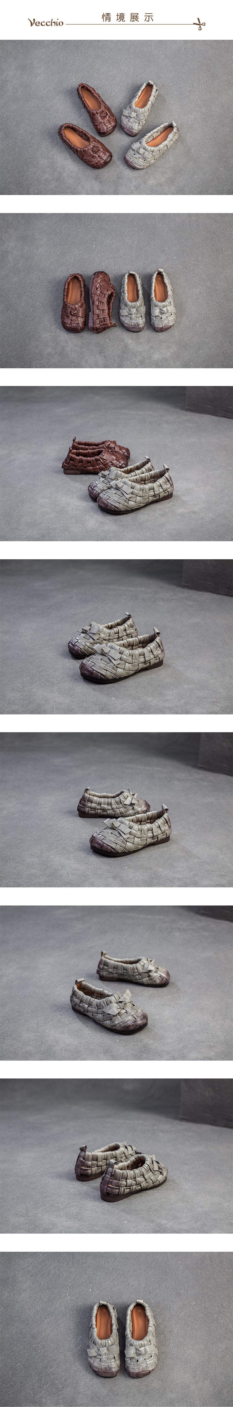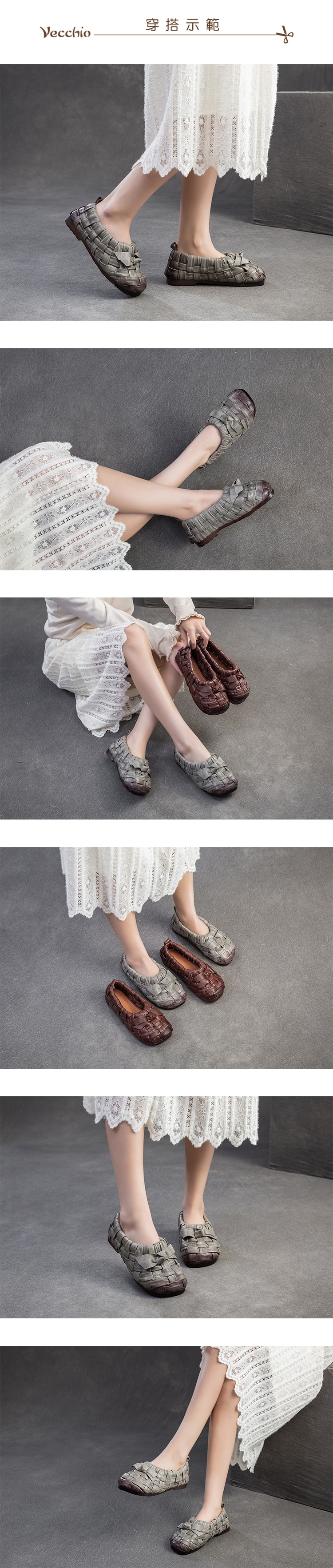 【VECCHIO】全真皮編織蝴蝶結低跟便鞋/全真皮頭層牛皮手工編織蝴蝶結造型低跟便鞋 女鞋 灰