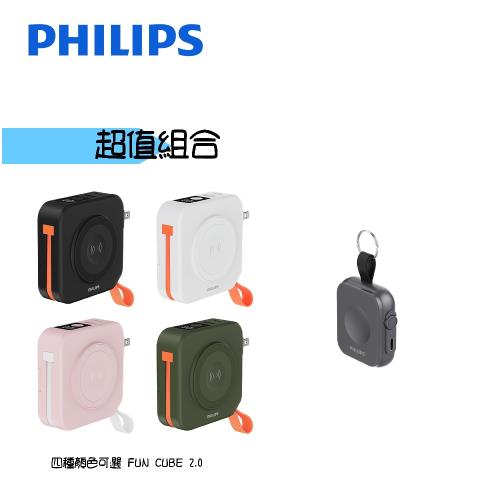 【超值組合】PHILIPS 飛利浦 FunCube 2.0 多合一行動電源+黑金剛磁吸手錶救急行動電源 DLP4348C+DLP1202Q