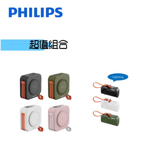 【超值組合】PHILIPS 飛利浦 十合一自帶線行動電源+手錶磁吸多合一行動電源(Lightning) DLP4347C+DLP2552V