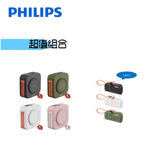 【超值組合】PHILIPS 飛利浦 十合一自帶線行動電源+手錶磁吸多合一行動電源(Type C) DLP4347C+DLP2552C