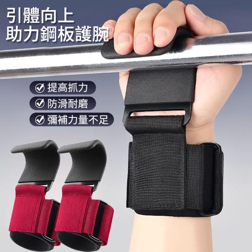 【時尚玩家】引體向上助力鋼板護腕 一對(引體向上助力帶 單槓助力勾 握力鉤 重訓助力鉤)