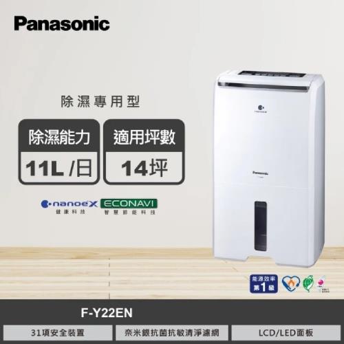 減徵貨物稅900↗︎Panasonic國際牌 1級能效11公升ECONAVI空氣清淨除濕機 F-Y22EN -庫