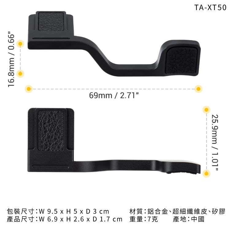 ●【品名】JJC富士Fujifilm副廠相機X-T50熱靴指把手指柄TA-XT50手把手柄(鋁合金+矽膠製)拇指扣Thumbs Up Grip