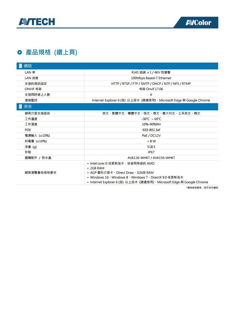 -支援 POE (Power-over-Ethernet) 功能,無需另外插電源線供電