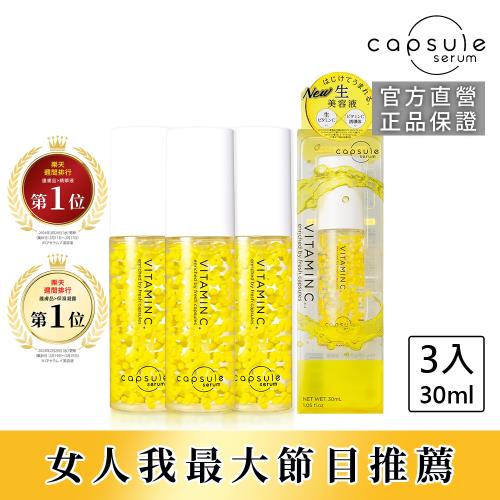 【CAPSULE SERUM 珂蓓思】晶亮修復維他命C精華30mLx3(膠原蛋白/玻尿酸/神經醯胺/積雪草/美白/改善毛孔)