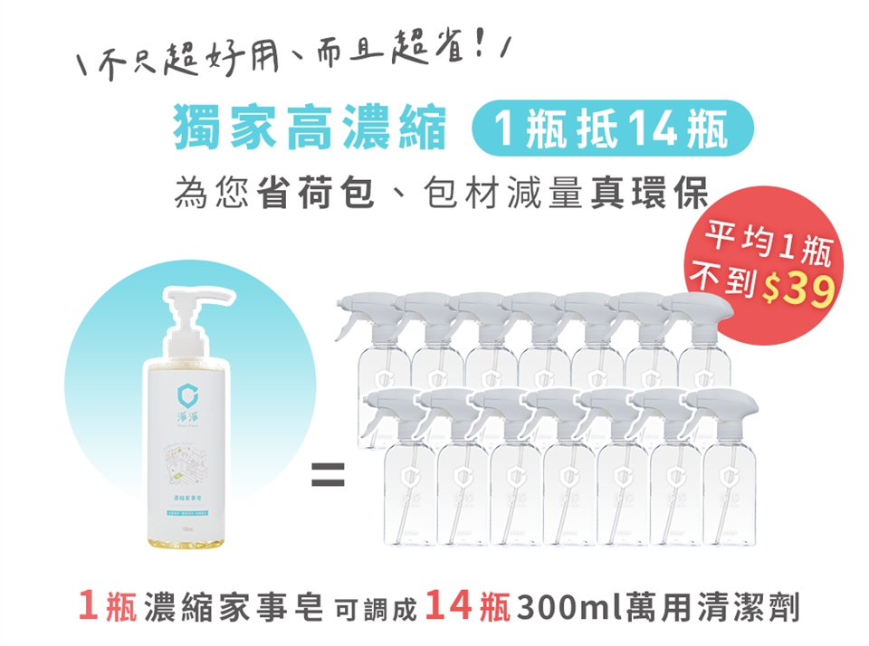 - 超省高濃縮配方,1 瓶可調 14 瓶、省噴瓶、省荷包
