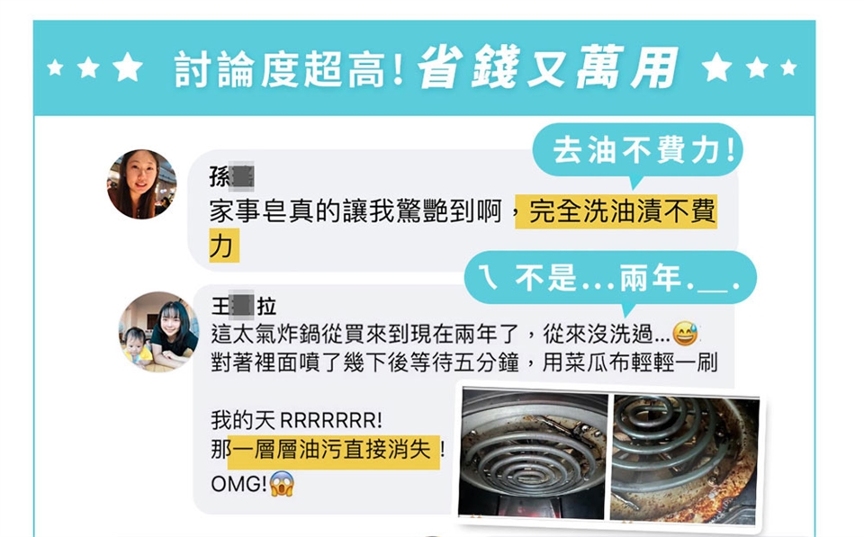- 強效清潔陳年油垢、水垢、衣物汗漬等各式髒污