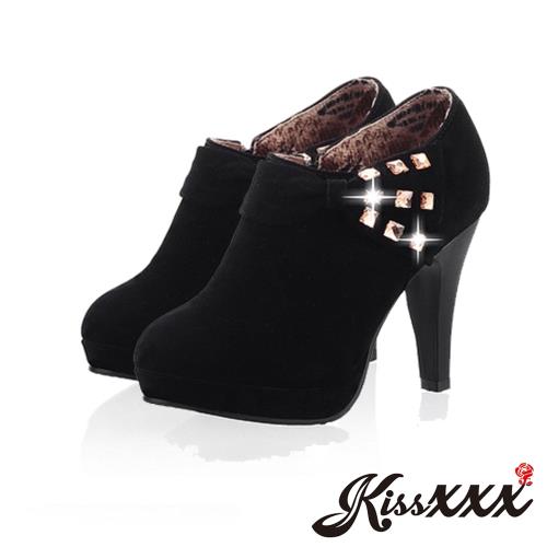 【KISSXXX】蝴蝶結方晶高跟踝靴/甜美蝴蝶結方晶鑽飾時尚高跟踝靴 女鞋 黑