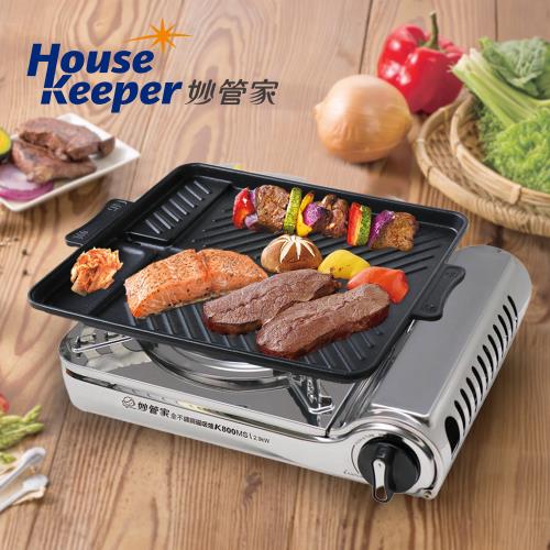 妙管家 全不鏽鋼磁吸卡式爐 K800MS+不沾長型烤盤HKGP-005 烤肉 中秋 BBQ 烤盤