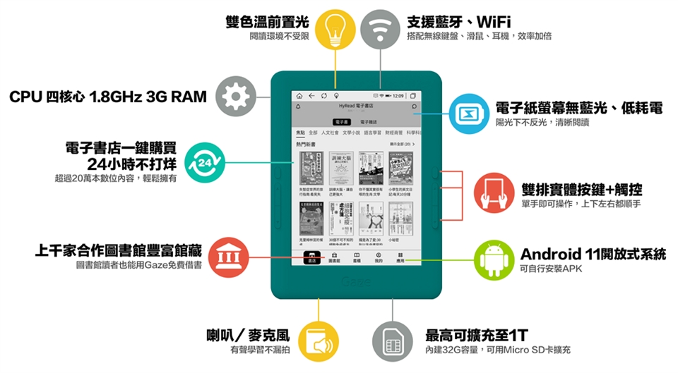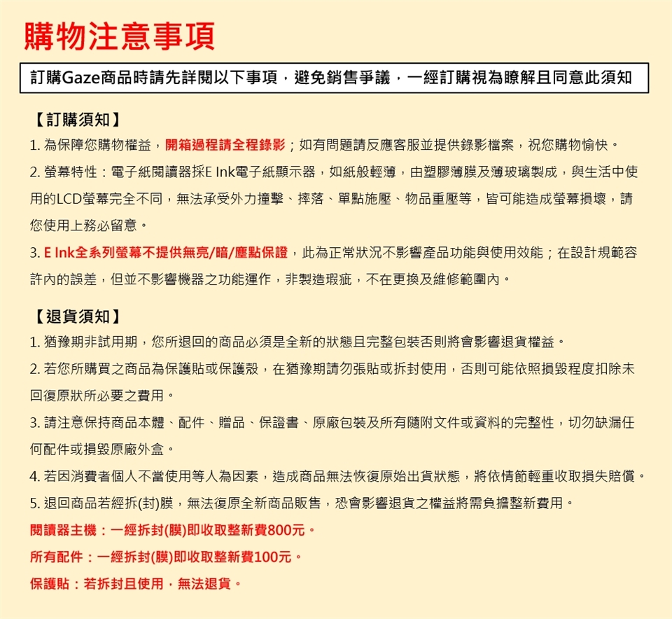 | 活動期間於以上通路購買以下Gaze系列閱讀器主機,可獲贈購書金折價券。 (1) 購買一台HyRead Gaze Mini+ 6吋主機,可獲贈購書金折價券【300元】。 | |
