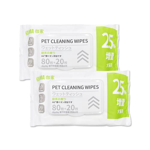 (2袋200入超值組)日本KOJIMA咖家-寵物專用Ag銀離子植萃消臭濕紙巾100入/袋-綠茶綠標(貓狗清潔濕巾,拭淨眼耳口鼻四肢,免水洗擦澡順毛)