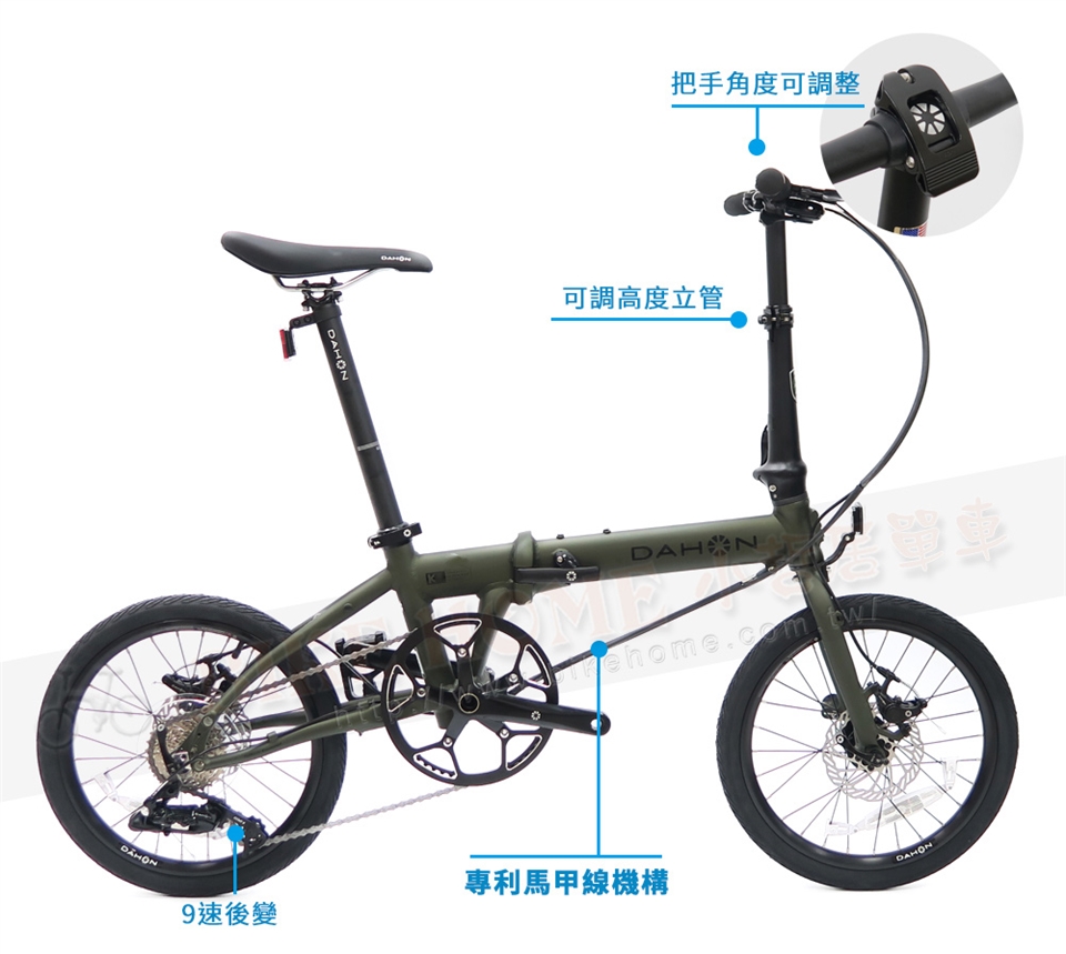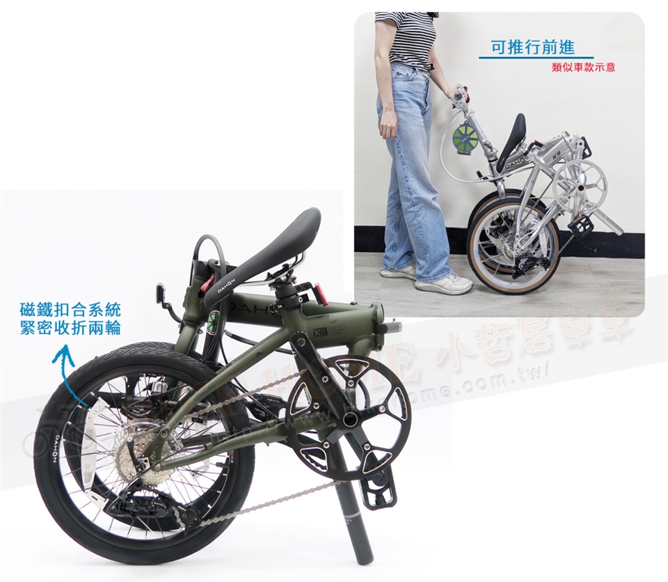 DAHON的經典小折,也是最熱賣的車款之一,收折體積小,手把收在兩輪間使收折整體更細窄,室內放在桌下或家裡任何零星小角落皆適合!更不受限汽車後車箱空間。